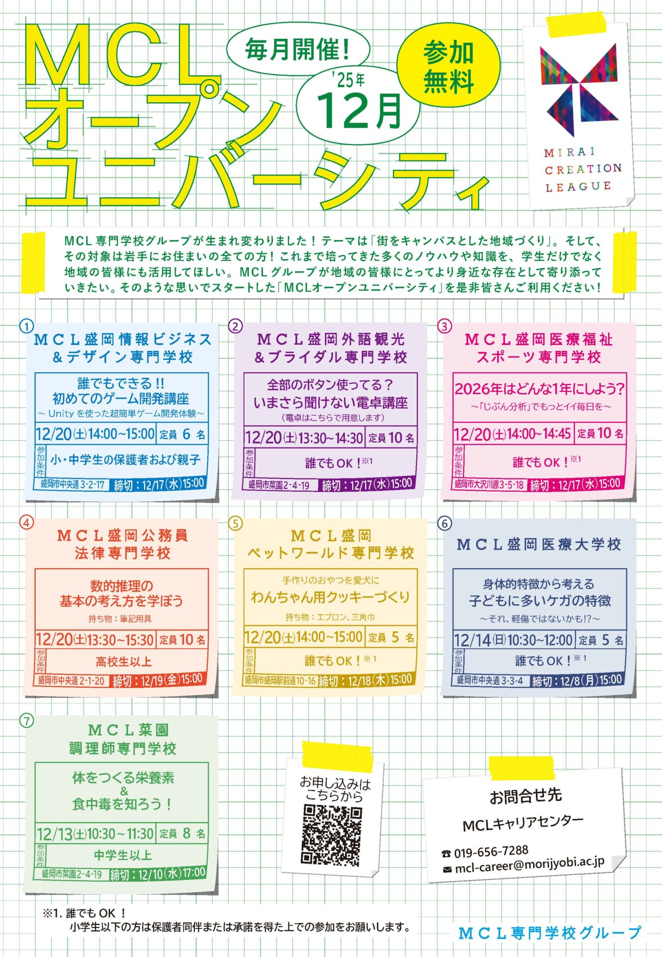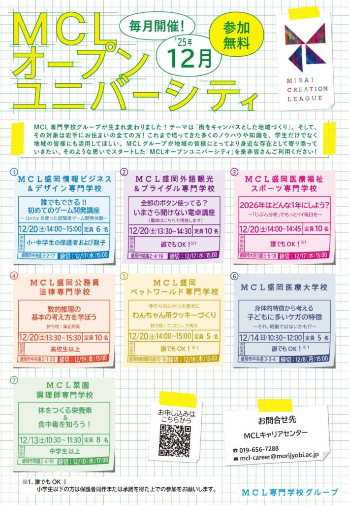 MCL専門学校グループでは、岩手県にお住まいの皆さんへ向けて市民講座を開催しております。